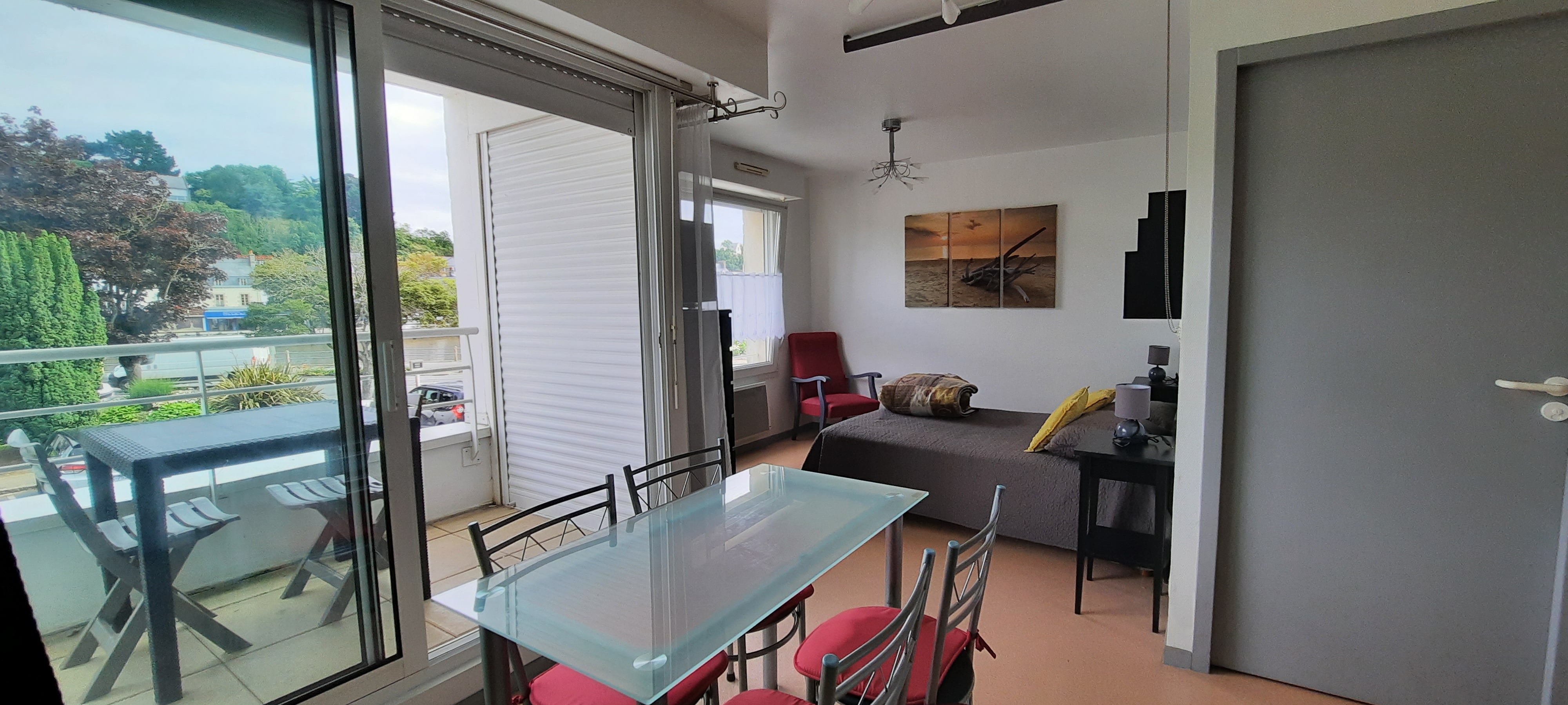 Balcon avec vue sur les quais (commerces, restaurants, bars) et salon de jardin. Plages, port et sentier côtier à 100m. Location du samedi au samedi. Non fumeur.